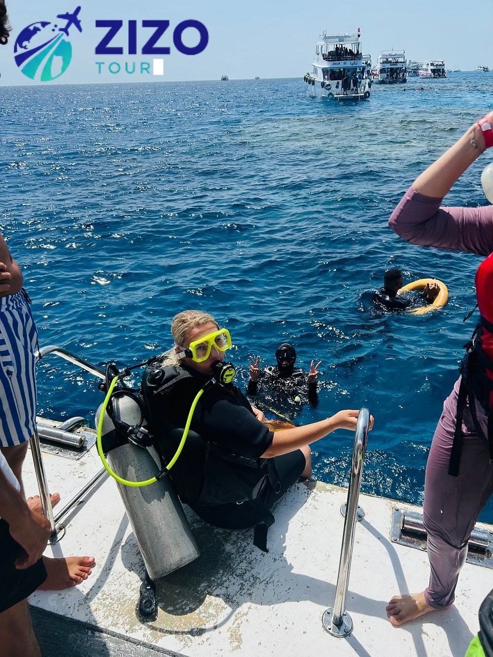 As the journey concludes, the return cruise offers a peaceful transition back to shore. The boat glides smoothly across the Red Sea, allowing guests to unwind after a fulfilling day. Many choose to sit quietly on deck, reflecting on the experiences, while others review photos or enjoy light conversations. The soft afternoon light creates a calming ambiance, perfect for mental relaxation.