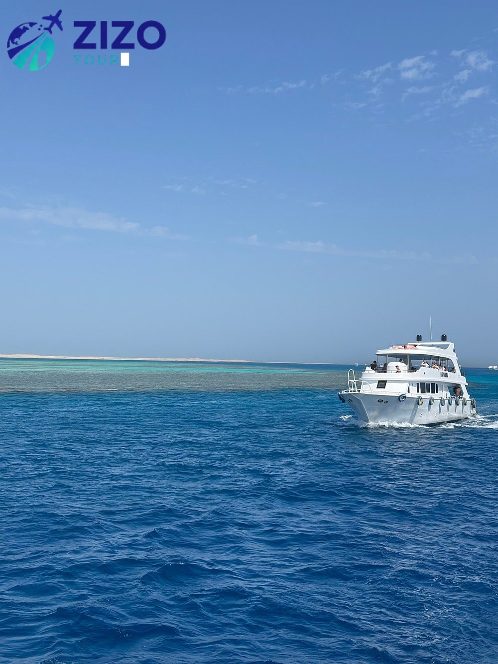 As the boat gently departs the marina, a peaceful Red Sea cruise begins toward one of the region’s most iconic marine reserves. The horizon opens wide, blending deep blue waters with endless sky, creating a sense of calm anticipation. Comfortable seating, shaded areas, and open decks allow guests to relax while enjoying panoramic sea views. Soft sea breezes and rhythmic waves enhance the emotional connection to the journey.
