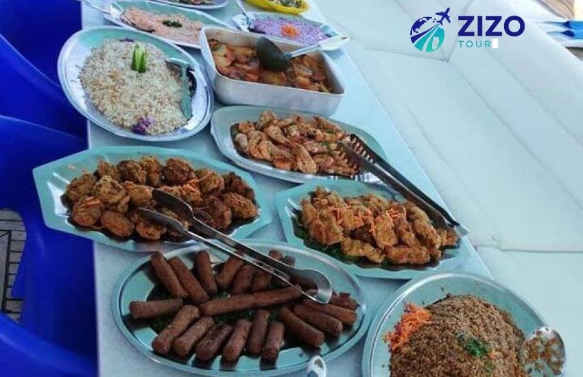 As the boat drifts peacefully along the Red Sea, a beautifully prepared open buffet lunch awaits, offering a comforting moment of warmth and satisfaction. The aroma of freshly cooked dishes fills the air, inviting you to enjoy a generous selection of local and international flavors crafted to suit every taste. With refreshing soft drinks, seasonal salads, and rich homemade specialties, the meal becomes more than nourishment—it becomes a shared experience of togetherness and calm.